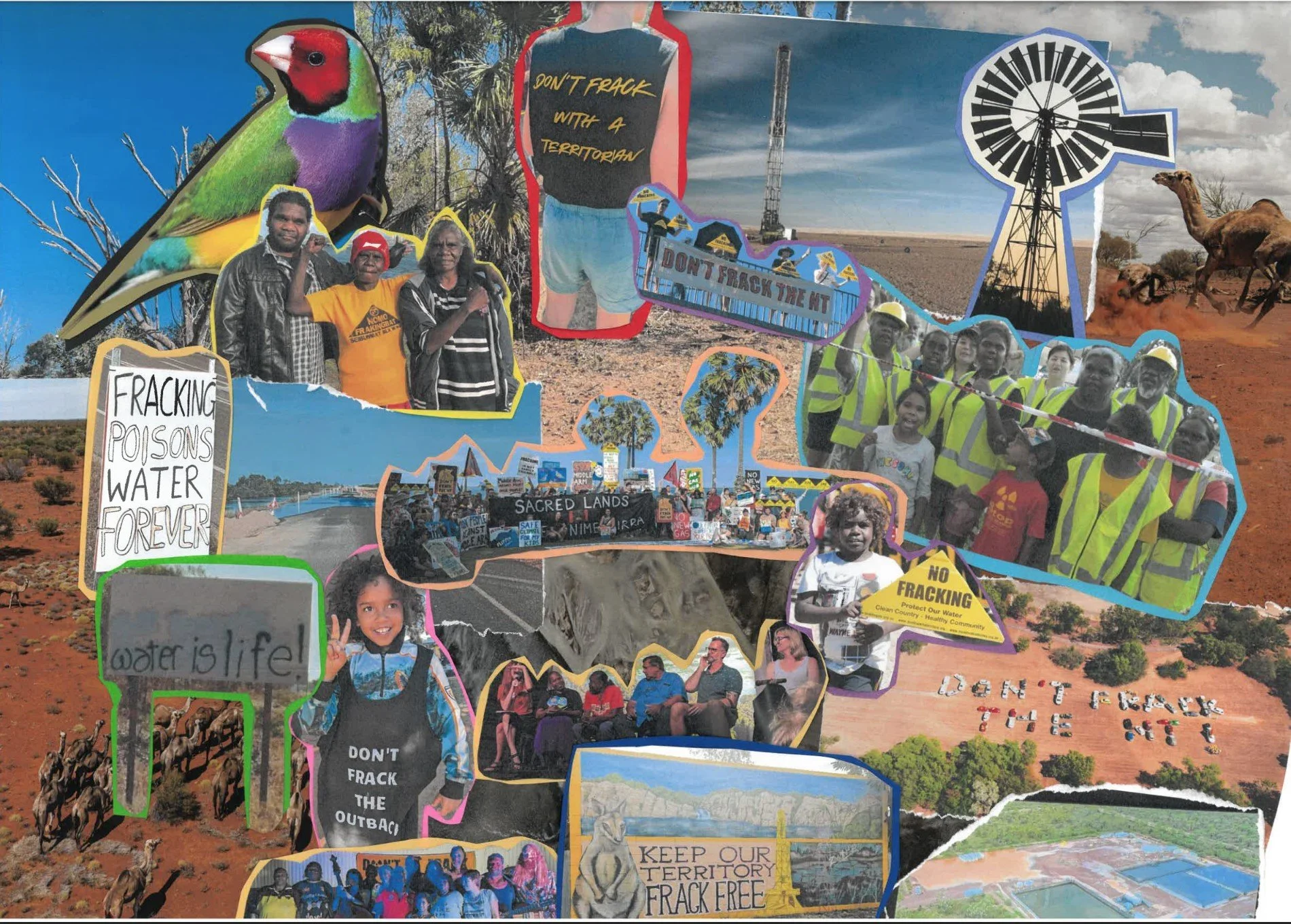 This piece explores the entangled processes through which relationships to Country are enacted, negotiated, and contested. In the Beetaloo, alliances between Traditional Owners, environmental activists, pastoralists, and scientists have been forged through shared, albeit uneven, vulnerability to extraction and a common commitment to the more-than-human world. The collage visualises these relations as a heterogeneous gathering, where care for Country emerges from collaboration across lines of difference. Grounds of Resistance thus reflects the intercultural entanglements that define much of the environmental politics in northern Australia: moments where people come together across difference to protect Country, even as they navigate the enduring legacies of colonisation and resource extraction.